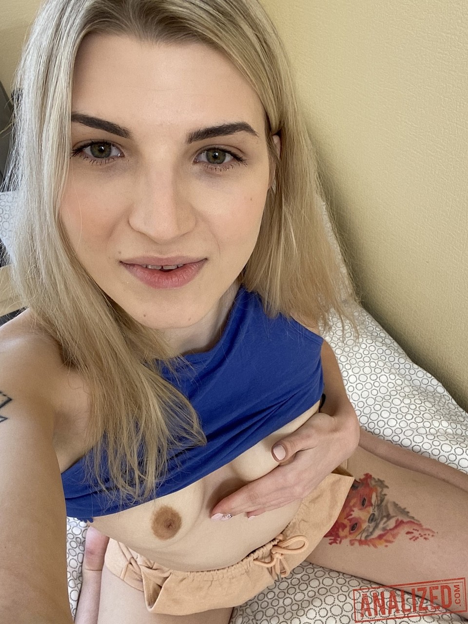Leggy blond Samantha Alexandra grabs her b...