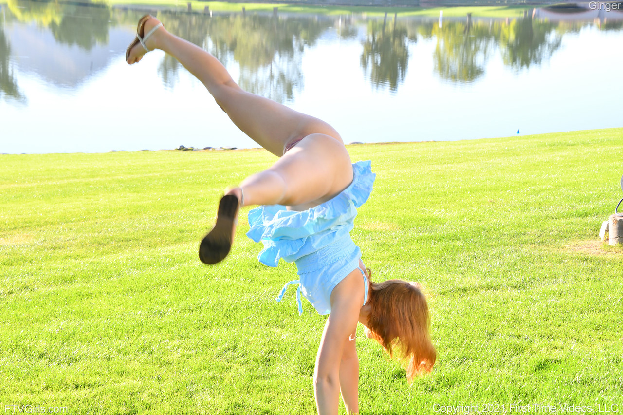 Glamour babe red hair toys her shaved pussy with a veggie and with her dildos