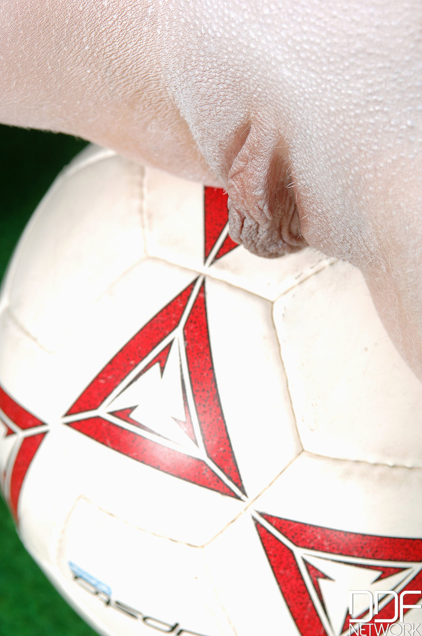 Charming Croatian soccer player Kristine gives oral sex & swallows cum on the field