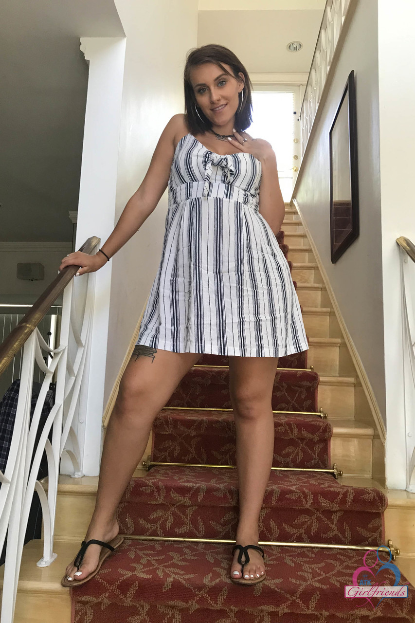 Pregnant amateur GF Indica Monroe displays her bum and melons in a solo