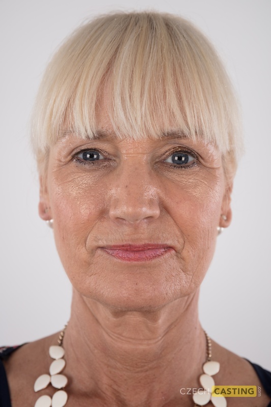 Older blonde skank woman Daniela stands proud and straight during undressed posing debut