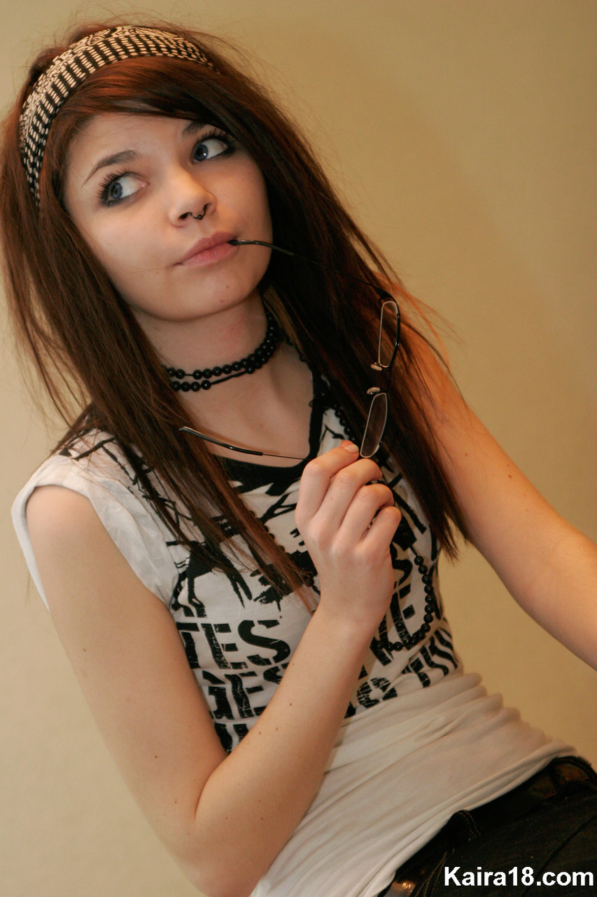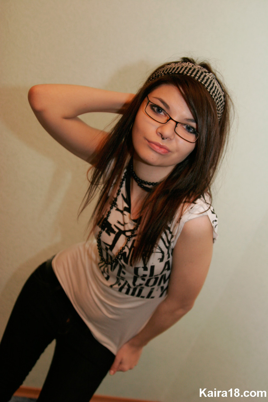 Solo lady girl girl Kaira 18 takes off her glasses while fully clothed