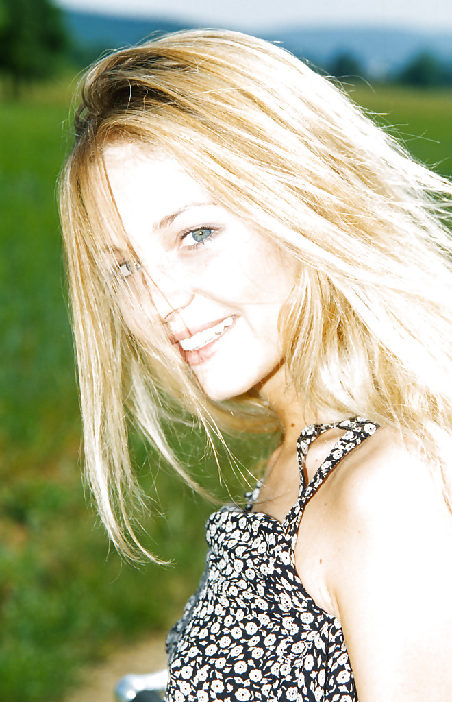 Close up outdoor posing featuring young babe Zuzana G on a bike