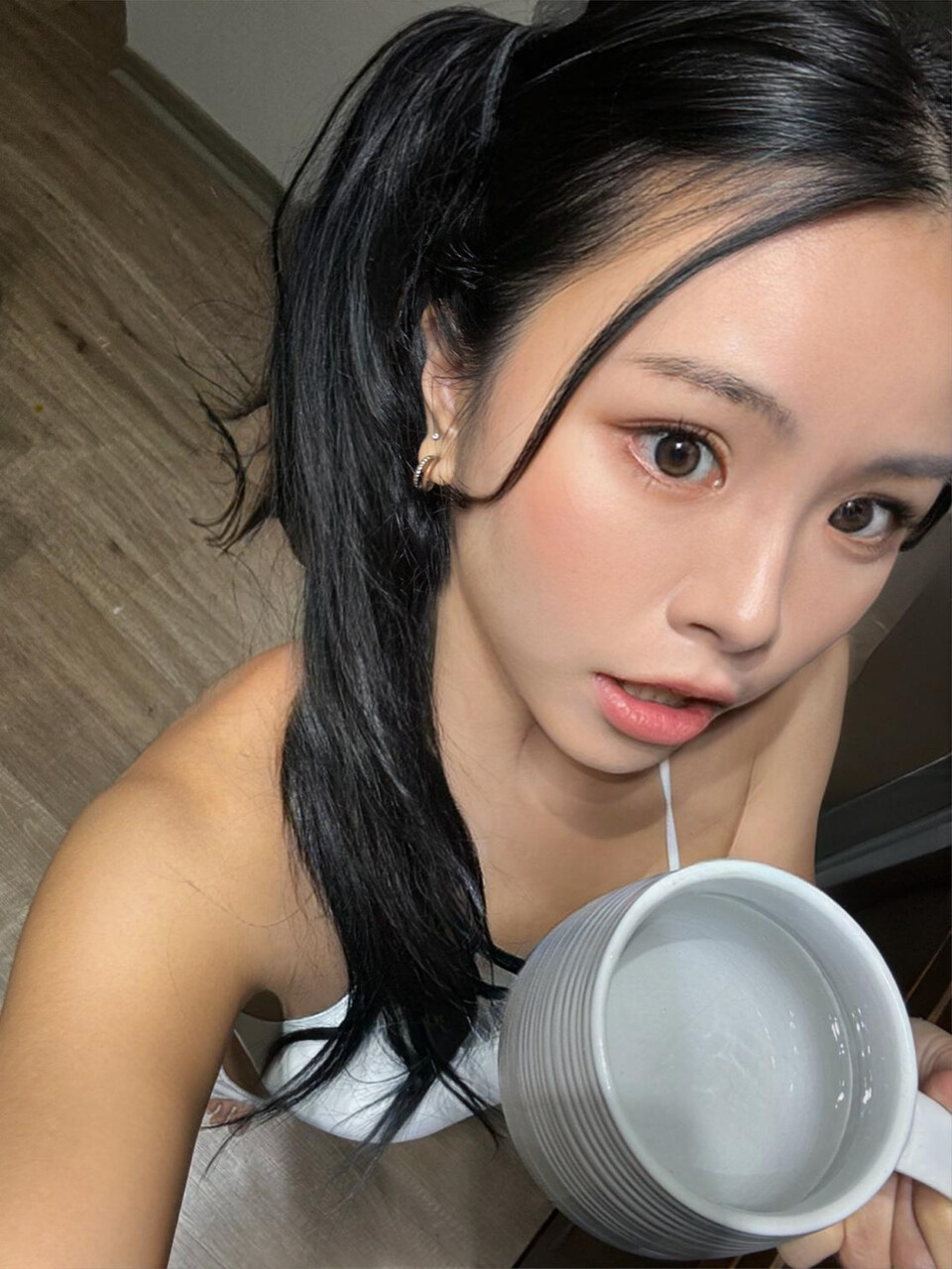 Lovely asian young Luv Hanna Zuki sticks out her tongue during naked play