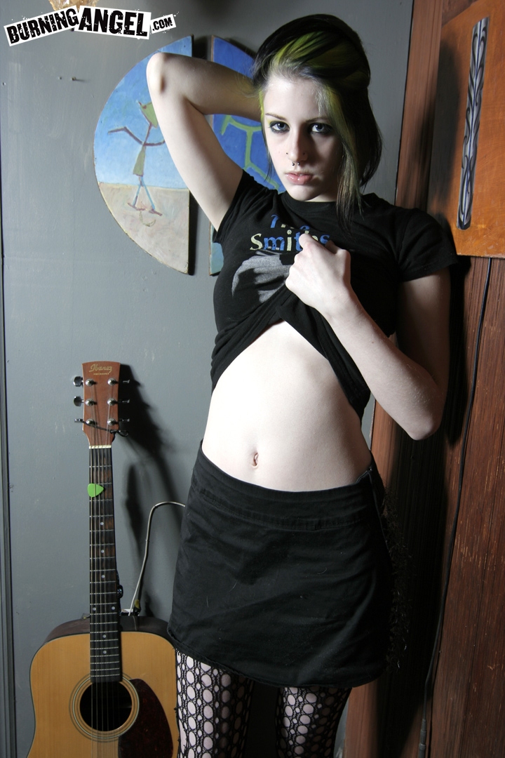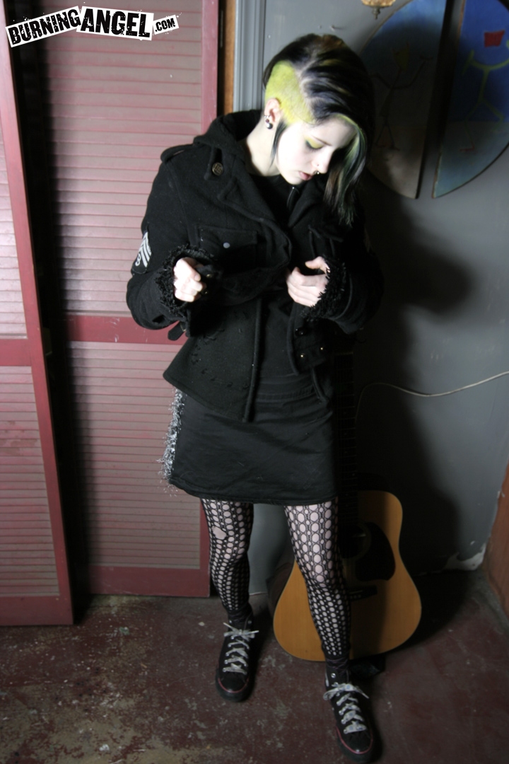 Goth misfit Rubella loses her clothes to display her soft body and perky boobs