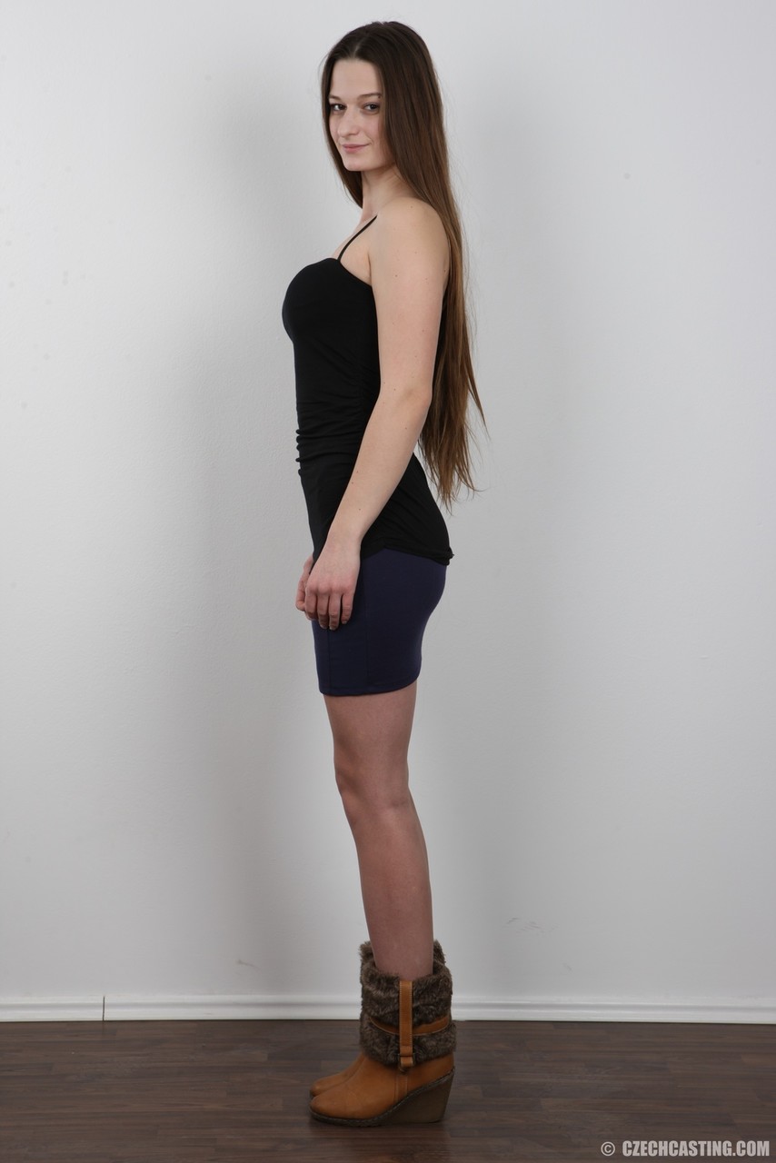 Long haired slut girlfriend girl takes off all her clothes to model in the naked
