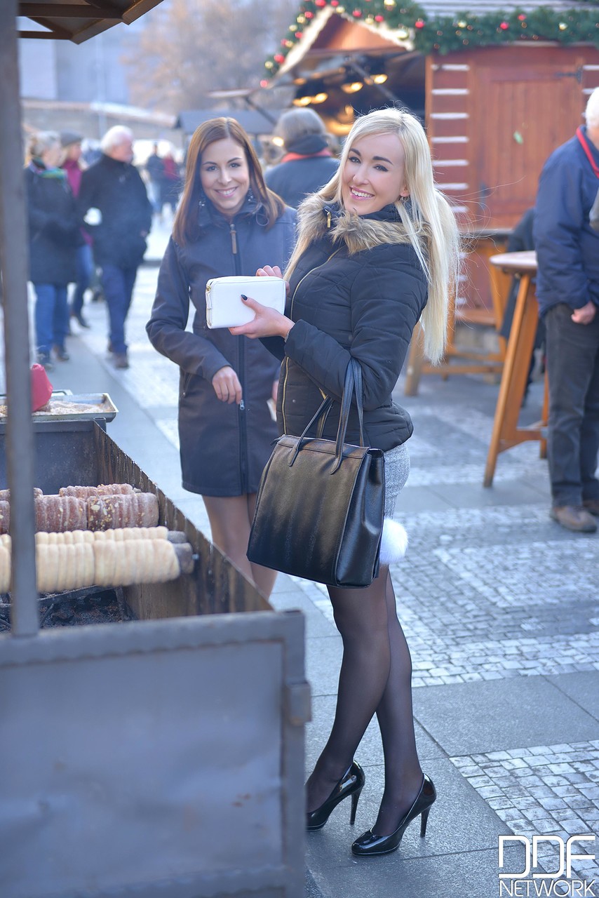 Two adorable European teens Daisy Lee and Antonia Sainz share a stiff boner