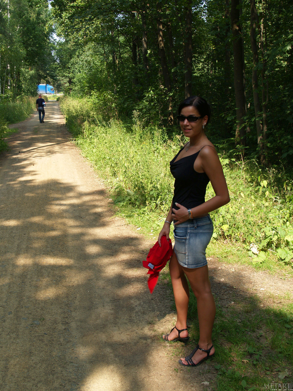 Brunette German Stefanie A showing off her giant booty and breasts in nature