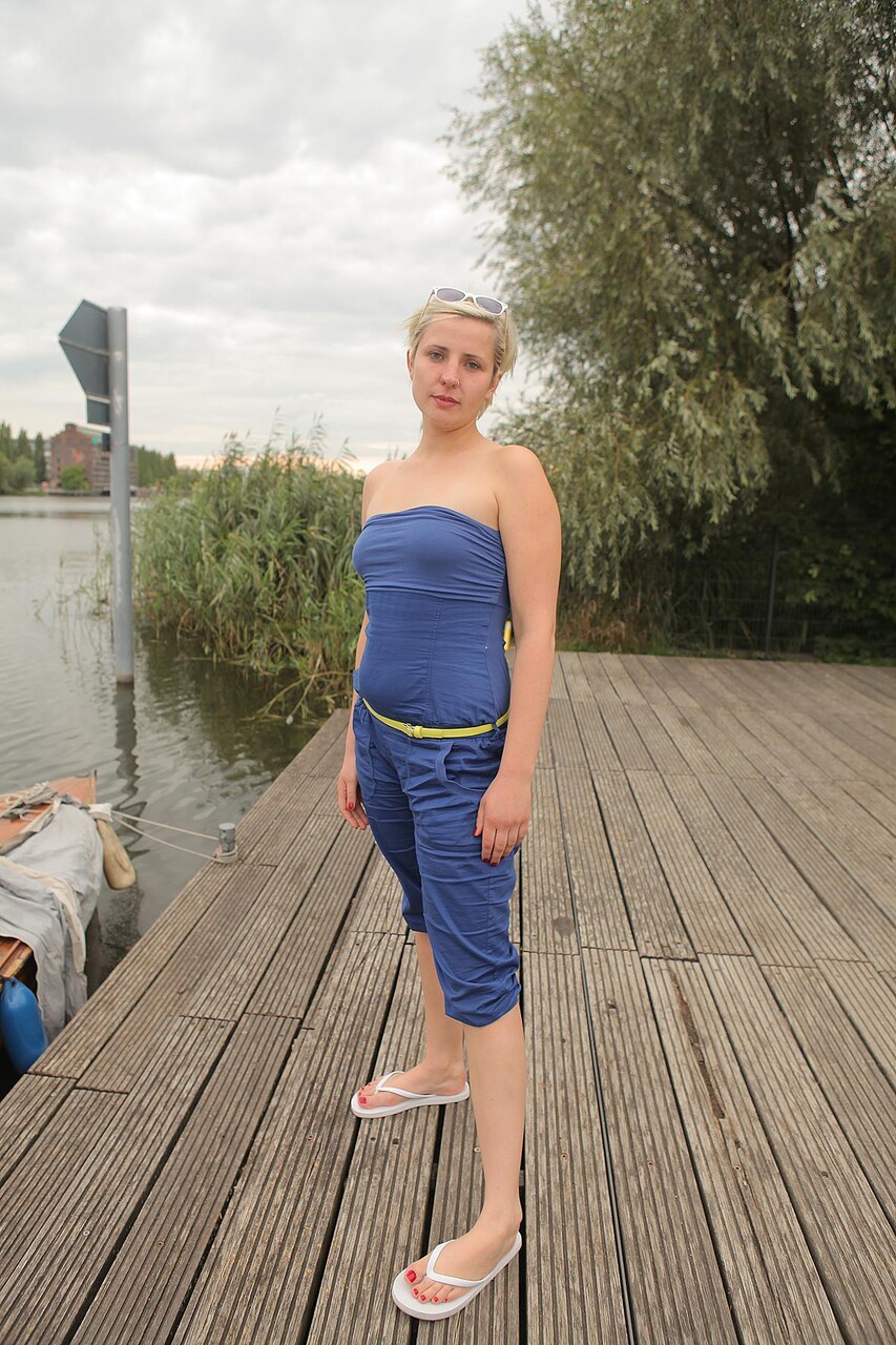 Gorgeous blondy amateur shows her natural titties and her huge ass