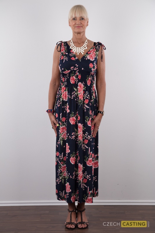 Older blonde skank woman Daniela stands proud and straight during undressed posing debut