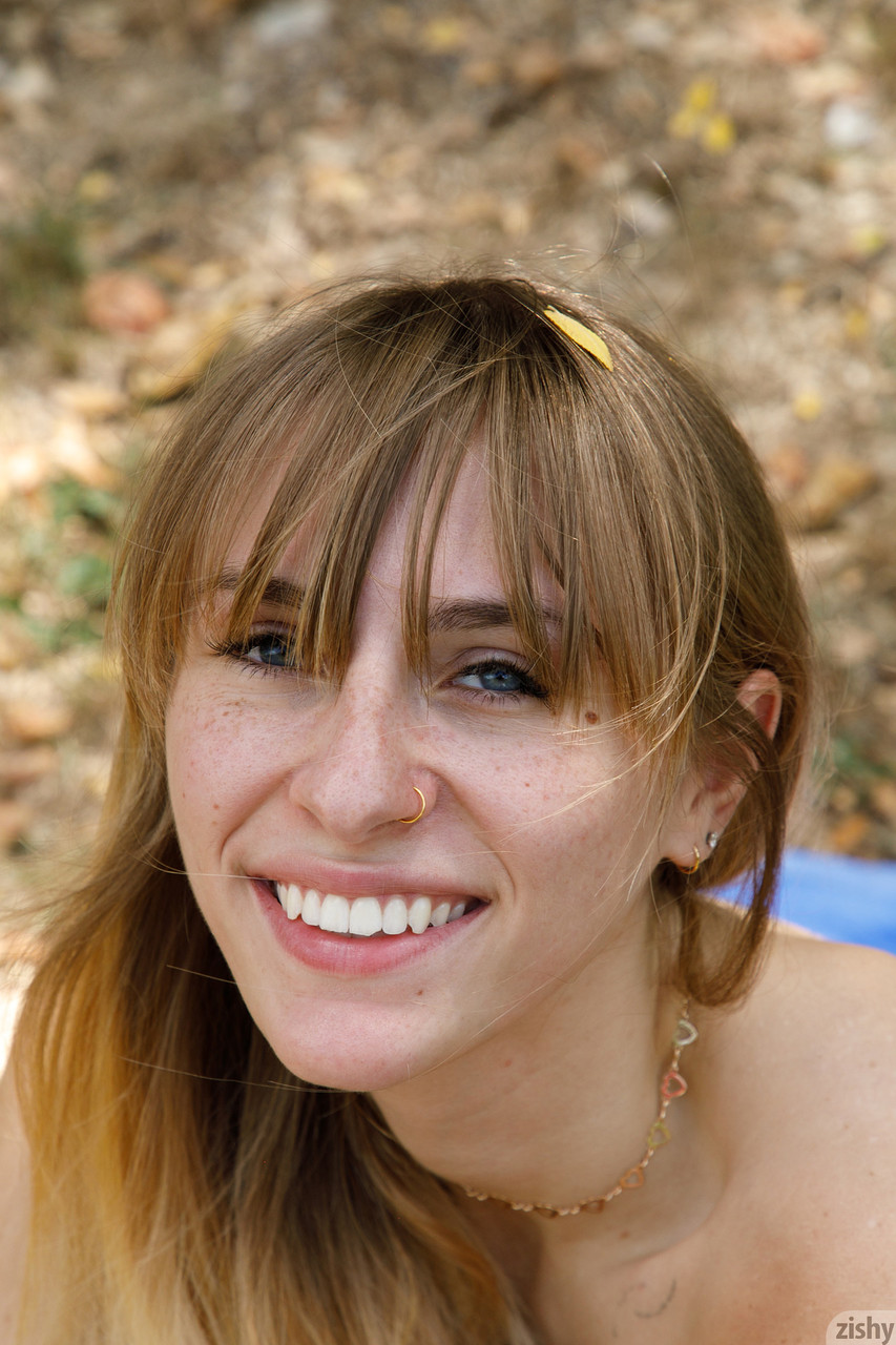 Sweet babe in behind shorts Angel Youngs shows off her juicy titties outdoors