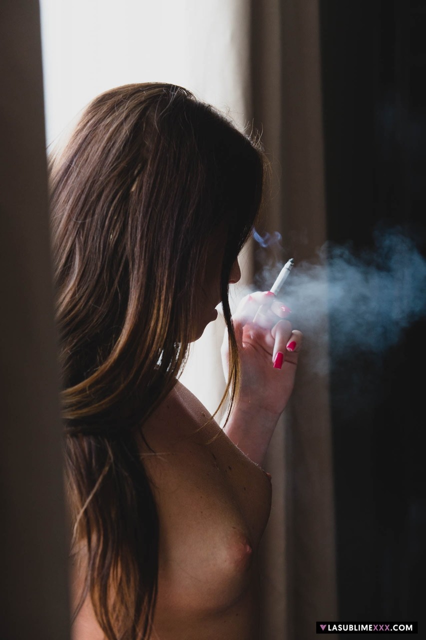 Spanish teenie Nata Lee masturbates in her leggings after smoking a cigarette