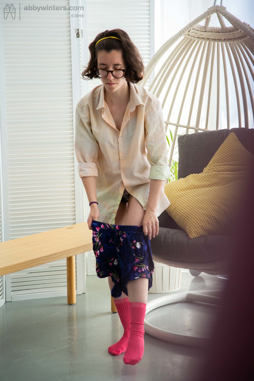 Busty Australian nerd Nuria shows her extremely bushy vagina while changing