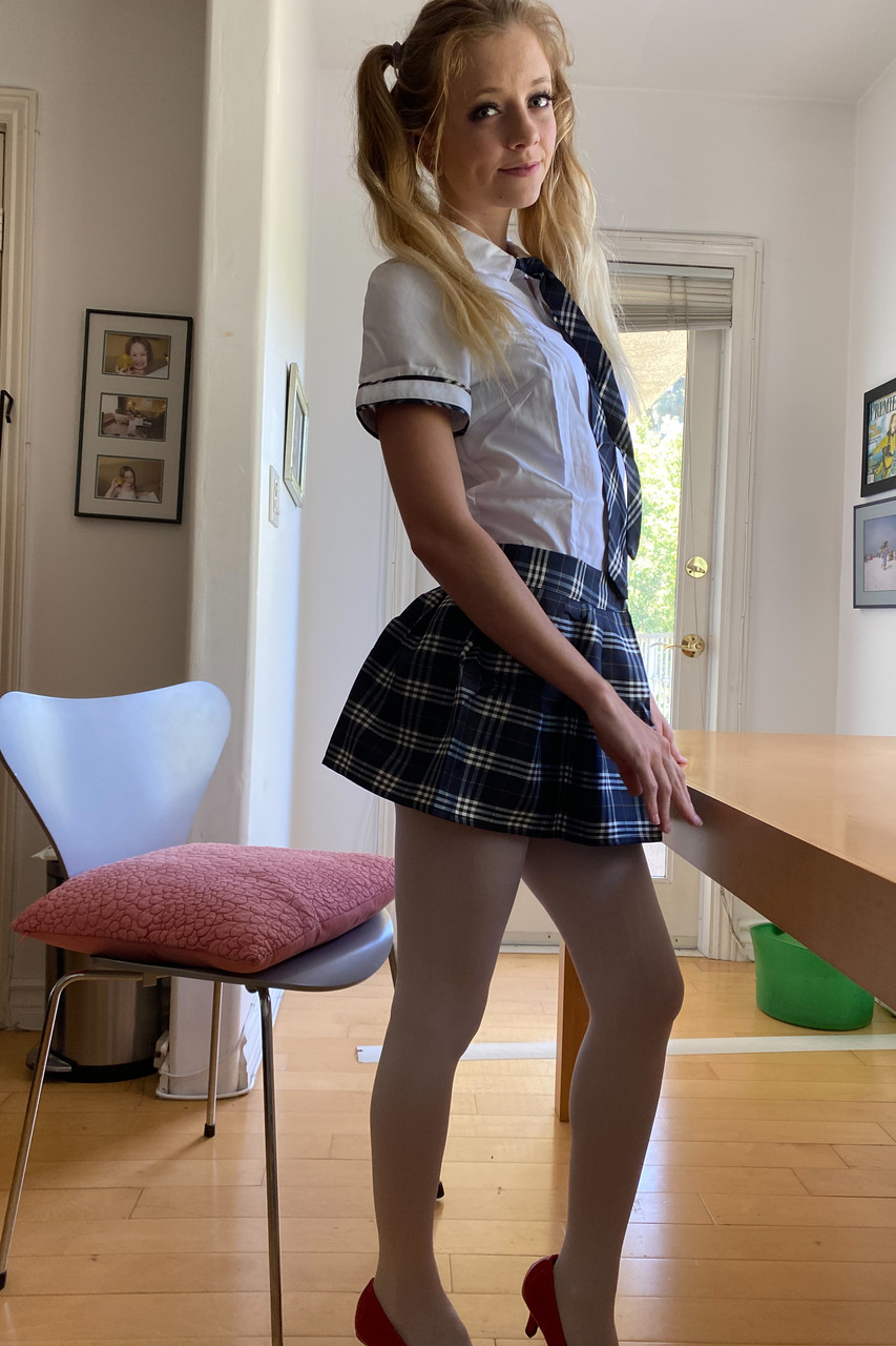 Amateur chick girl woman with pigtails Riley Star uncovers her hot ass and silky snatch