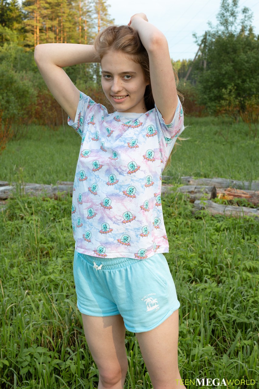 Cute lesbians Flicka Luchik and Alice Kingsly eat each other's muffs outside