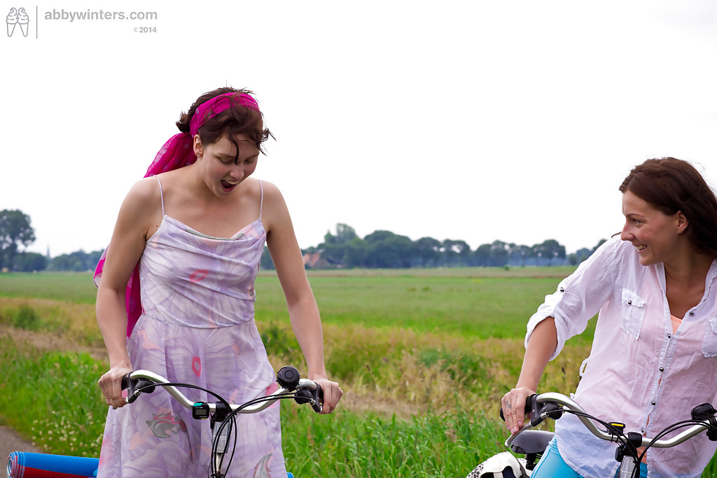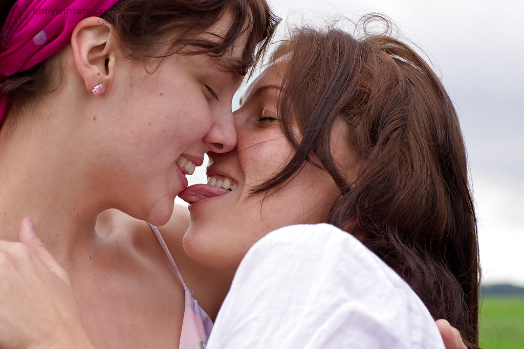 Young teen hoes Gina J and Immie tongue kiss and lap furry pussy outside