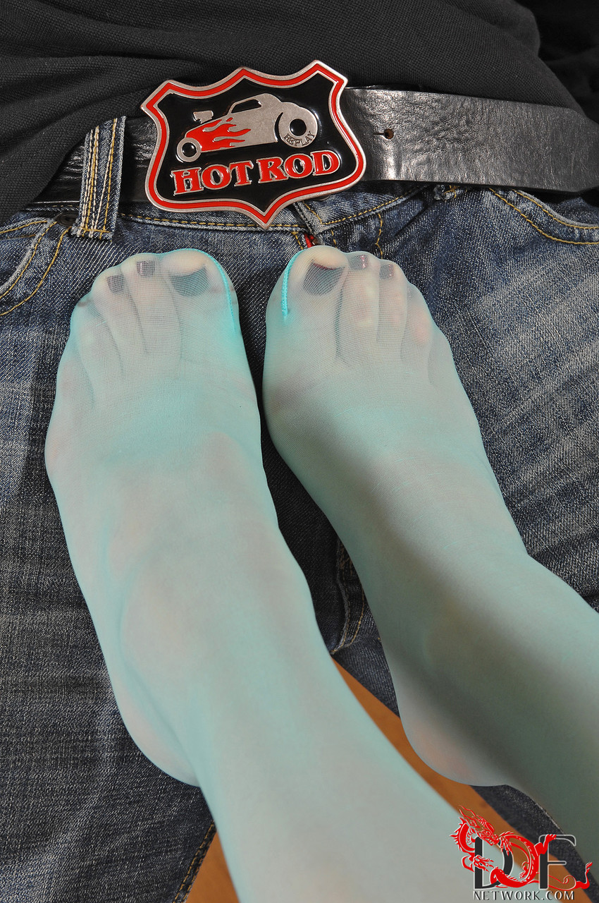 Hungarian sweety Kitty Cat gets her nylons stripped before giving a footjob
