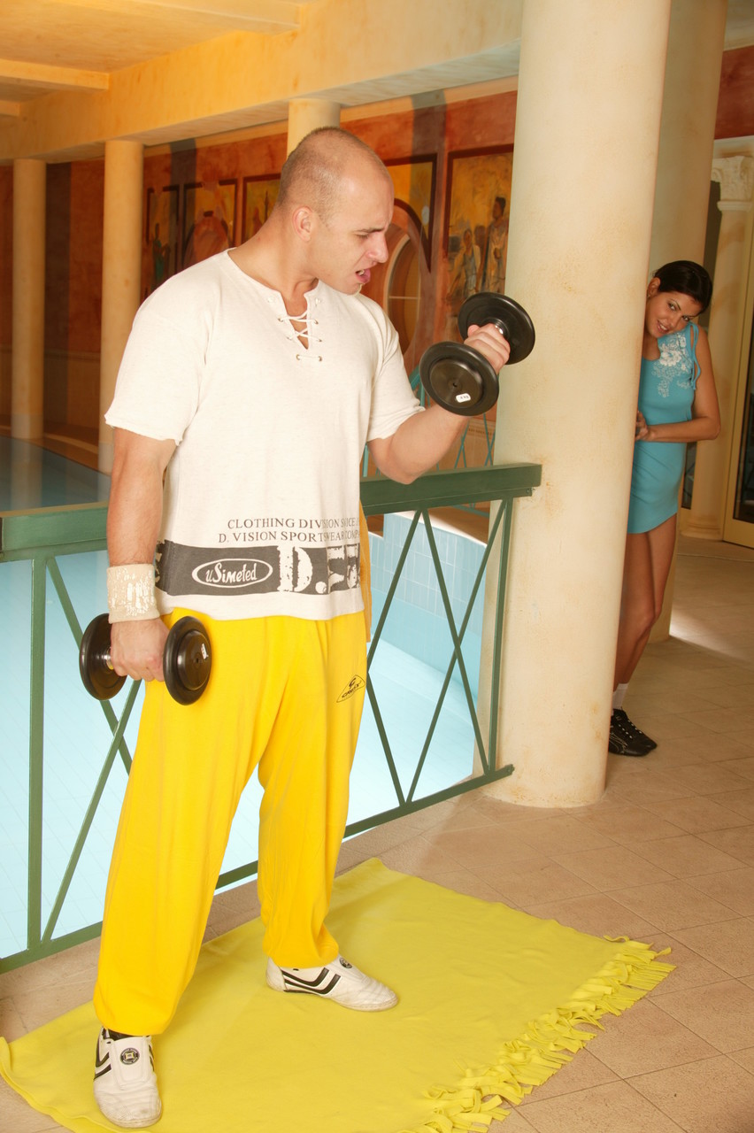 Busty teenage brunette Lucky seduces and fucks a horny bodybuilder