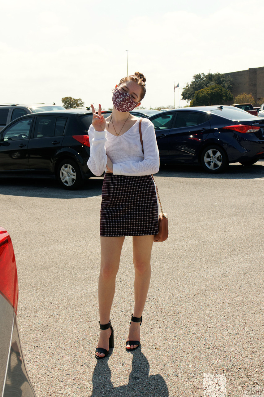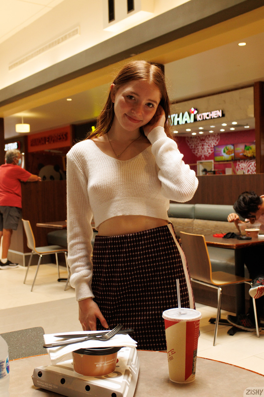 Pretty babe Myra Glasford flashes her butt and boobies before stripping in a car
